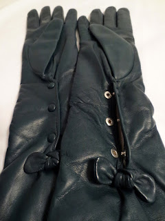 These 20.5" gloves featured a nice bow detail near the mosquetaire wrist opening with unusual snap closure.