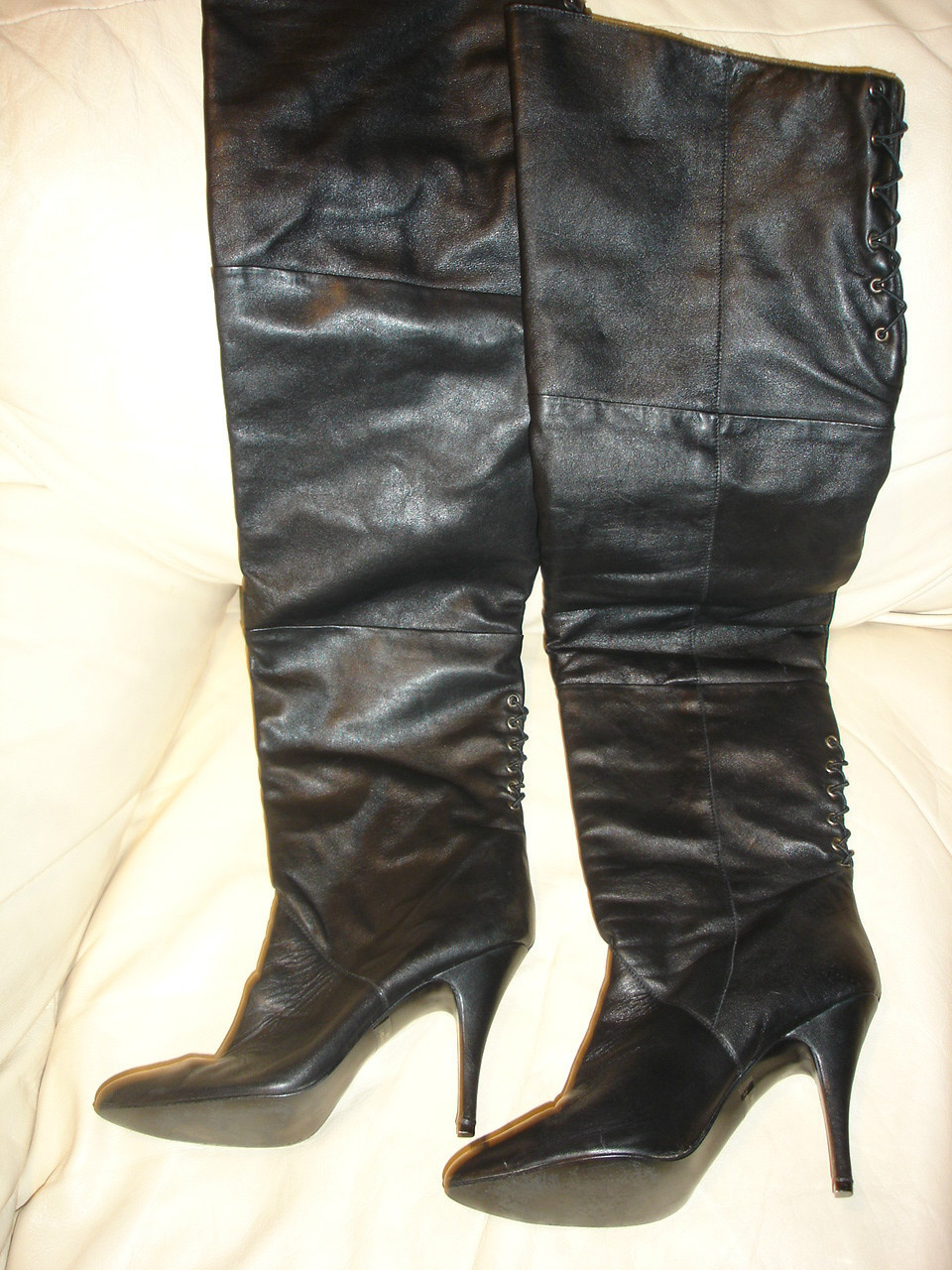 eBay boot seller "mineuron" sold these nicely modeled and photographed vintage Wild Pair black leather crotch-high boots for their starting bid of $259.99. Even more impressive considering they're a small size 7.